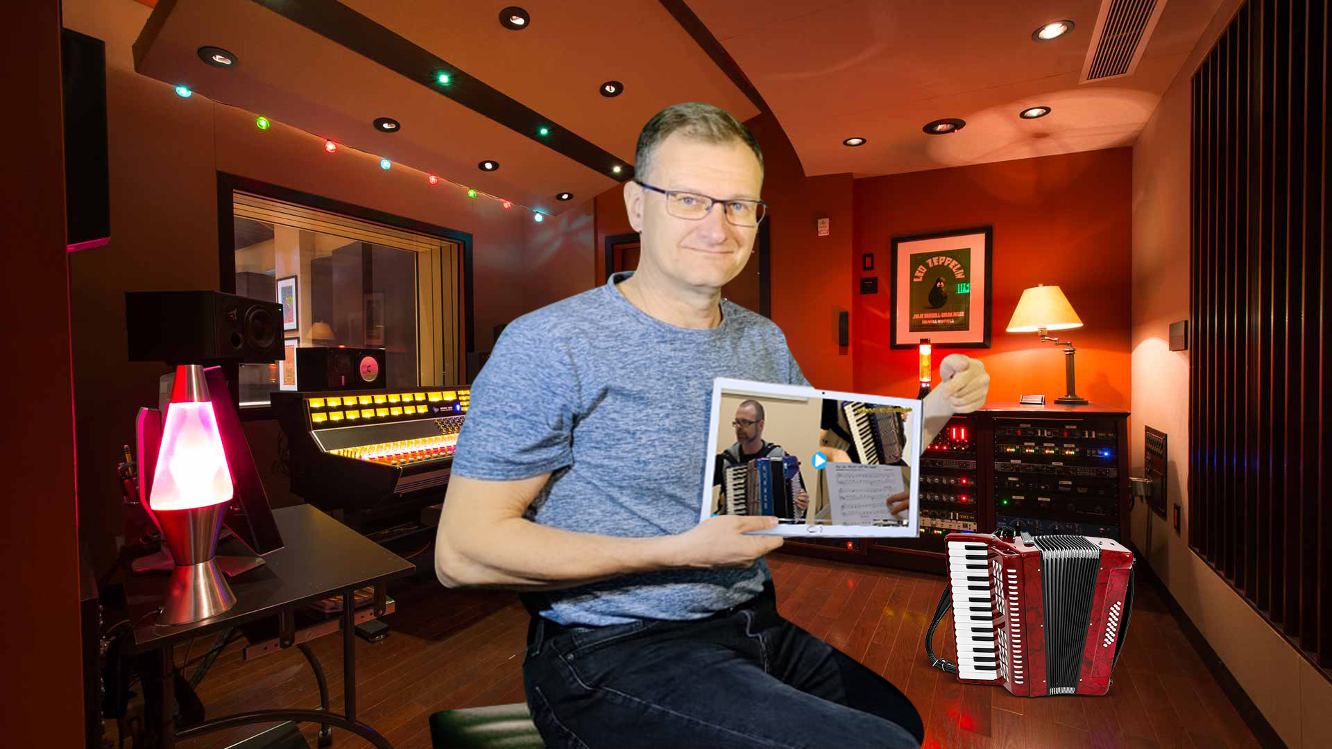 LAUTSPRECHER einschalten. Martin, dein virtueller Akkordeonlehrer mit seinem Akkordeon Orchester wartet...